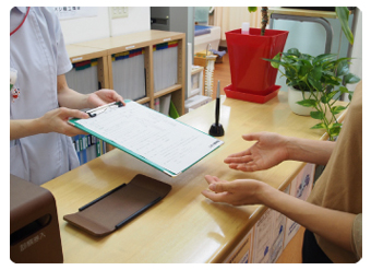 初診時には必ず保険証をご提示ください。(交通事故の方は保険証は必要ありません。)問診票をお渡ししますので、分かる範囲でご記入ください。